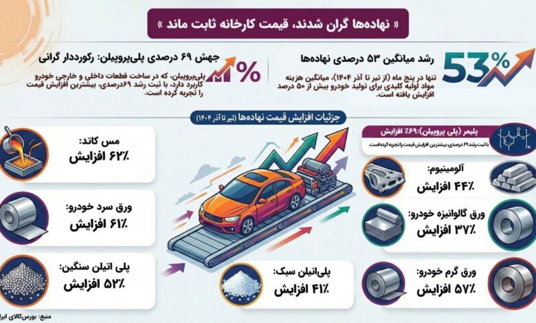 بر اساس گزارش رسمی معاملات بورس کالا، از تیرماه تا آذرماه ۱۴۰۴، مواد اولیه اصلی خودرو جهش‌هایی را تجربه کرده‌اند.